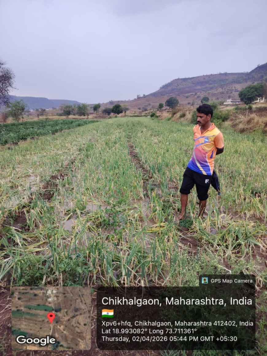 पश्चिम भागातील चिखलगाव येथे पावसाचा जोर इतका होता की, काढणीला आलेला गहू, कांदा, मका आणि फरशी यांसारखी पिके पूर्णपणे जमीनदोस्त झाली आहेत. अनेक ठिकाणी शेतात पाणी साचल्याने कापणी केलेला गहू भिजला असून कांदा सडण्याची भीती निर्माण झाली आहे. वर्षभर कष्ट करून पिकवलेले पीक डोळ्यादेखत मातीमोल होताना पाहून शेतकरी हवालदिल झाला आहे.